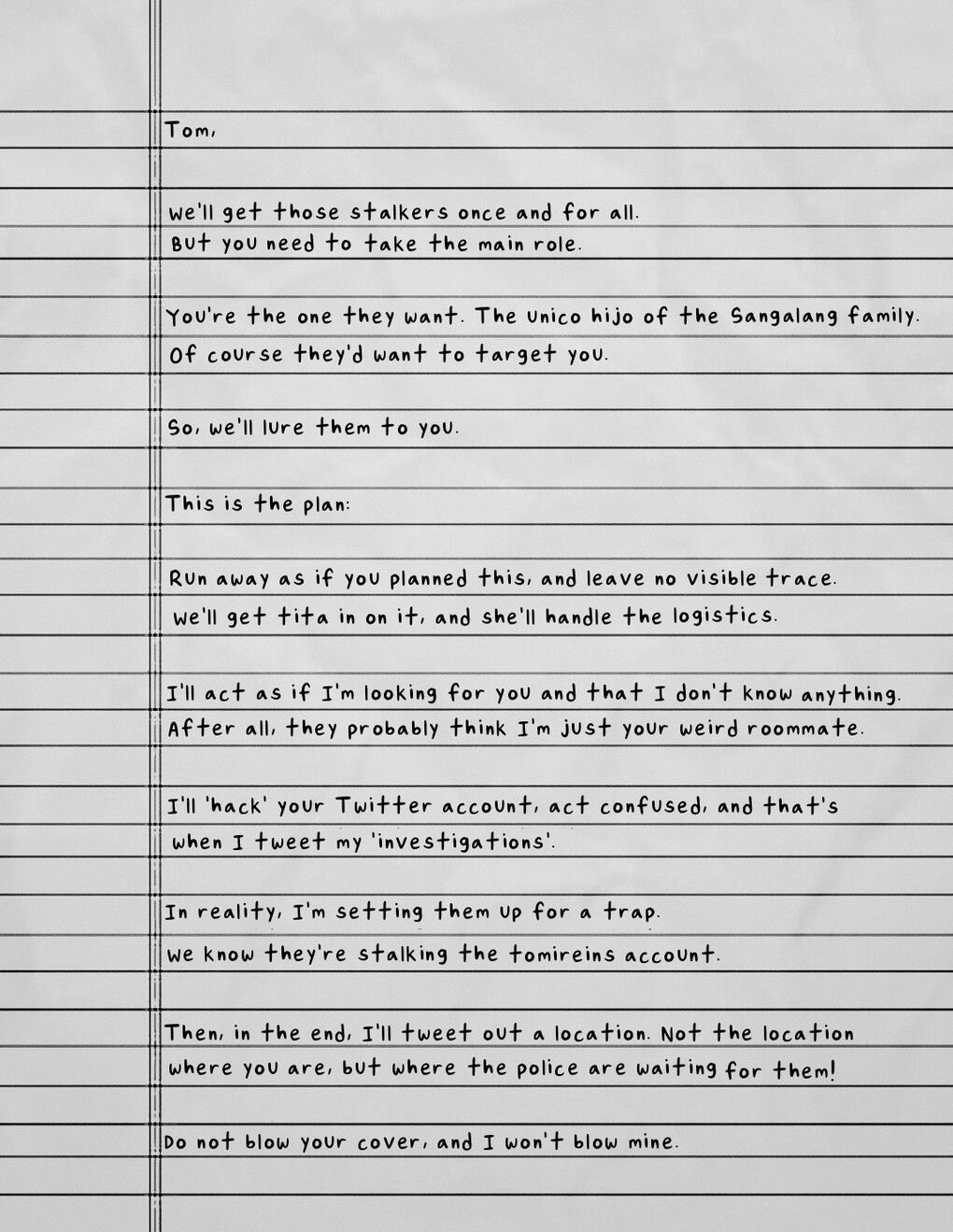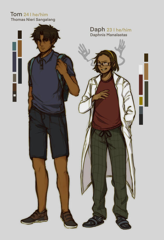 As a burnt-out overachiever trying to relight his flame, Tom spends most of his time writing his undergraduate thesis. With a renowned television host for a mother, he is internally pressured into keeping a good reputation in front of others. Tom rarely opens up about himself and his insecurities as such.Those brief moments of emotion are only ever seen by his roommate Daph and in his journal. Still, for some odd reason, Daph's shadow-sensing powers do not work well on Tom. Both are unsure why this limitation exists, but they consider it an unwitting advantage to their relationship (after all, some things are better left unsaid).